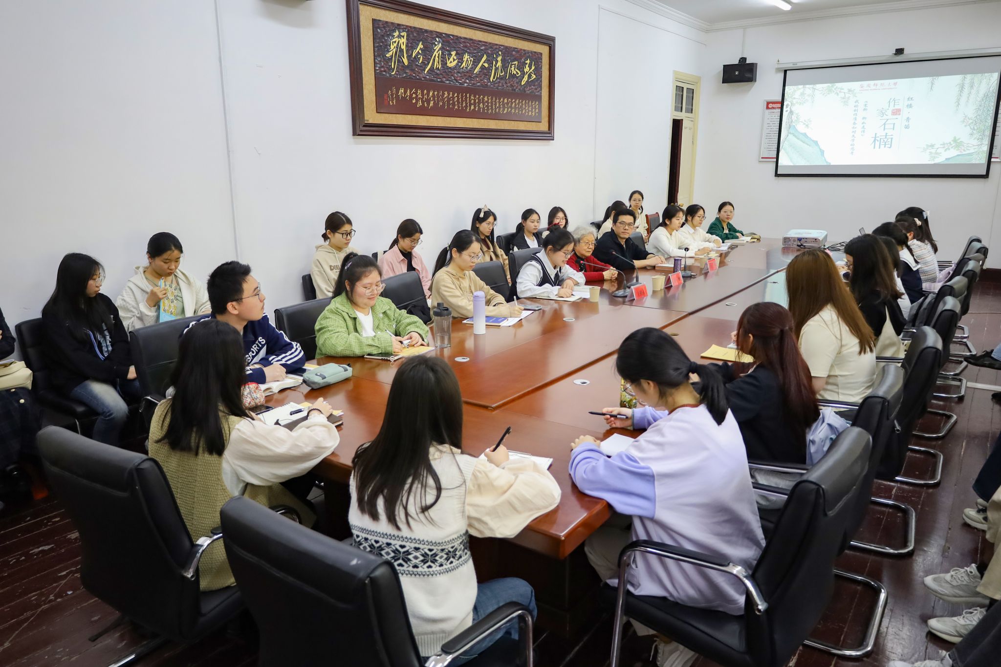 4月12日,当代著名作家,安徽省作家协会原副主席,我校兼职教授石楠老师应邀做客“红楼·青苗”论坛,与青年大学生分享自己的创作准备和对文学的思考。安徽省文艺评论家协会副主席、安徽省文艺评论基地美学与文艺评论研究中心主任江飞教授作为特邀嘉宾点评了本次活动,2023级文典班全体学生、省级样板党支部成员代表到场聆听学习交流。