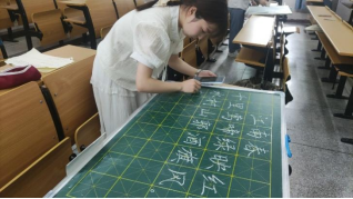 在教学楼214教室,硬笔字与粉笔字比赛正如火如荼地举行。参赛选手们全神贯注,笔下的汉字书写刚劲有力,笔法严谨。粉笔是师范生未来职业生涯中必不可少的工具,同学们的粉笔字作品或清晰娟秀清新隽美,或格式整齐排版精美,充分展现出了文史类师范生们粉笔字书写能力。