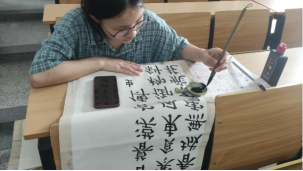 在菱湖校区教学楼214、215教室举办了第四届师范生专业技能大赛“三字”书写比赛,约有100余名学生报名参加。