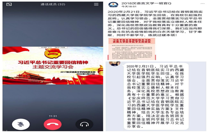 团委组织团员青年线上学习习近平总书记给在首钢医院实习的西藏大学医学院学生重要回信内容,并展开热烈讨论。