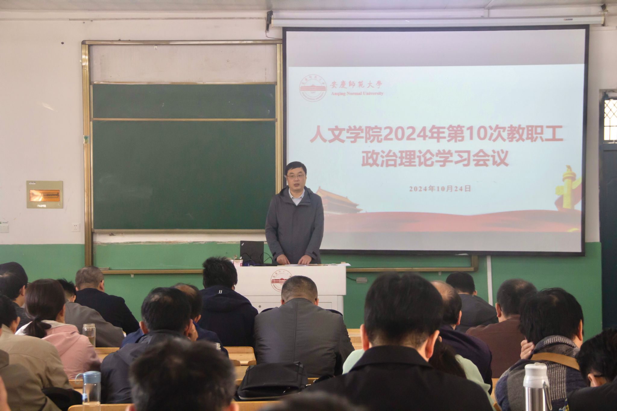 汪孔丰院长做总结讲话,要求全体教职员工以党的二十大、二十届三中全会精神及习近平总书记考察安徽重要讲话精神为指导,真抓实干,担当作为,全面贯彻新发展理念,把各项工作落地见效。要增强责任意识,加强课堂管理,多与学生沟通交流,提高工作积极性。要善于关注热点、聚焦热点、把握机遇、不断思考、多做结合、抱团取暖,积极申报科研项目,力争在学术界有声音、有影响力。