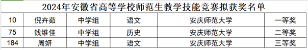 教学副院长周红兵专门带领指导老师郭青林、王广州等到比赛现场给予指导、鼓励,最终,汉语言文学专业倪卉茹、周妍获得中学语文组一等奖、三等奖,历史学专业钱维佳获得中学历史组二等奖的佳绩,为学院、学校争得了荣誉。