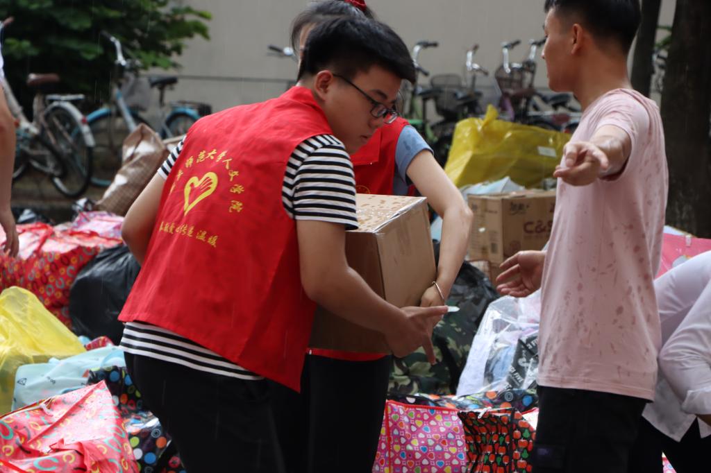 “在搬运行李的过程中,突然下起了暴雨,但是大家都没有退缩,而是淋着雨饿着肚子抢着完成任务。”李路凡分享道,虽然突逢暴雨,但大家都和先前一样,没有一个人停歇。雨水打湿了头发,浸透了衣服,志愿者们却丝毫不在意,全身心的投身志愿服务工作中。“身为一名向党组织积极靠拢的入党积极分子,积极投身志愿服务工作,力所能及地帮助大家也是我想用实际行动表明自己入党的决心。”(撰文:吴敏雪 摄影:吴敏雪 审核:王波)