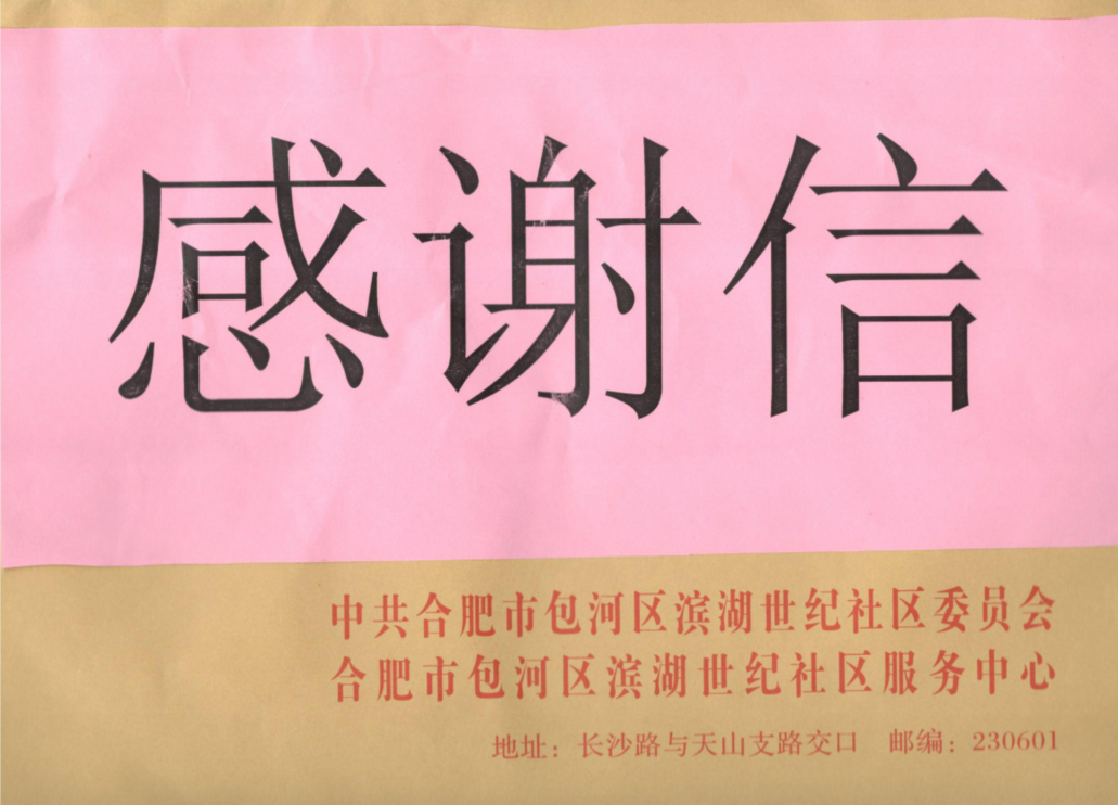 团委收到一封来自合肥市包河区滨湖世纪社区服务中心的感谢信。信中介绍了盛传杰同学的抗疫事迹,称赞他的责任与担当,肯定桃花族论坛