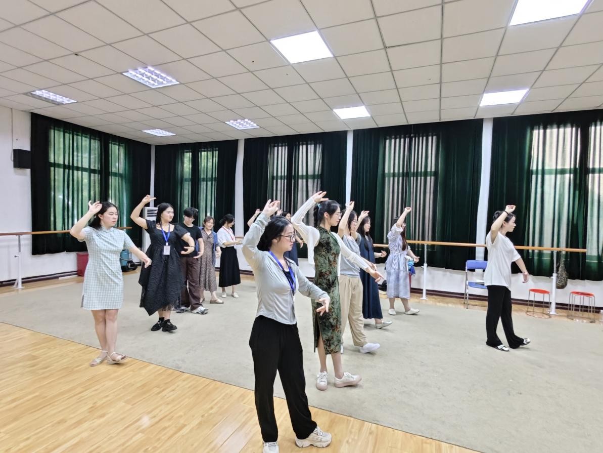 黄梅戏艺术展厅。学员们了解到了黄梅戏的诞生、发展与变迁,他们还亲身参与黄梅戏的表演,跟随黄梅剧艺术学院表演专业的“小老师”们,一字一句地学唱“为救李郎离家园,谁料皇榜中状元……”,一板一眼地练习身段、眼神、步法。这种从理论到实践、从观摩到体验的学习,让抽象的戏曲艺术可触可感,极大提升了学员学习和研究戏曲的兴趣,是对学员艺术素养的一次全面提升。