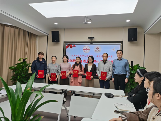党委书记王波,副院长沈志富,校内指导教师梁诸英、冯慧敏,研究生秘书施维等参加见面会。安庆四中教研室主任王琳主持见面会。