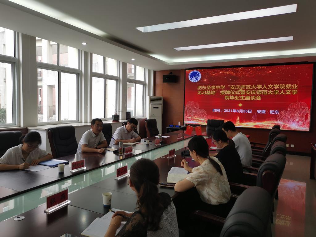 党委书记张红飞一行四人赴肥东圣泉中学开展用人单位调研回访。圣泉中学党委书记周静热情接待了调研组一行。