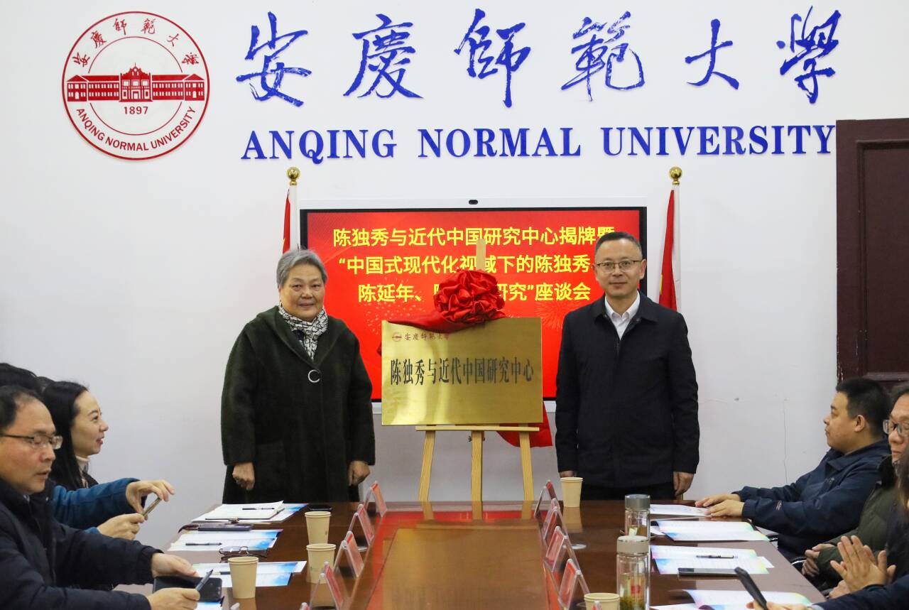 陈独秀与近代中国研究中心揭牌暨“中国式现代化视域下的陈独秀、陈延年、陈乔年研究”座谈会在我校举行。校党委常委、副校长徐晓宁,来自上海、安徽等地的专家学者,安庆市委史志室、独秀园管理处负责人,我校科研处、教务处、桃花族论坛