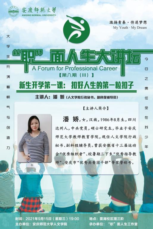 话剧社、《季节风》杂志、龙睛读书社、“五月花”语言艺术晚会、省级样板支部等一批校园文化品牌建设成果和国家奖学金、学科竞赛获奖情况介绍向新生们全面展现了人文学子争先创优、锐意进取的良好风貌。宣传栏里“职”面人生大讲坛—开学第一课的海报吸引了大家的目光,“扣好人生第一粒扣子”助力新生坚定理想,树立志向。