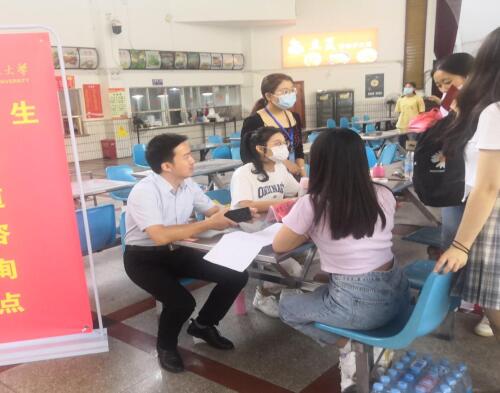 副院长汪超老师、研究生科研秘书沈志富老师、研究生辅导员江贻隆老师也来到咨询点参与到示范岗的工作当中。汪超老师与部分新生进行了交流,为他们进行学科专业的解读,深入浅出,让新生快速了解本专业的基本概况,并细心叮嘱他们提高疫情安全防范意识。沈志富老师与江贻隆老师也对研究生党员示范岗工作进行了现场指导,不仅帮助新生协调解决学业及生活难题,更鼓励研究生党员们要发挥先锋模范作用,增强志愿服务精神。老师们和研究生党员们的周到服务使新生们更添温暖与归属感。