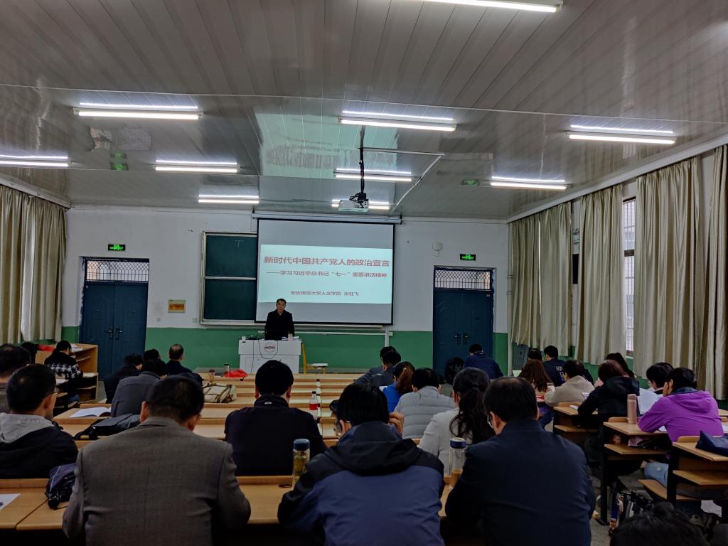 在理化楼三楼阶梯教室举办习近平总书记“七一”重要讲话精神专题宣讲报告会。学院党委书记张红飞在会上作专题报告,学院全体教职工参加会议,会议由党委副书记王波主持。