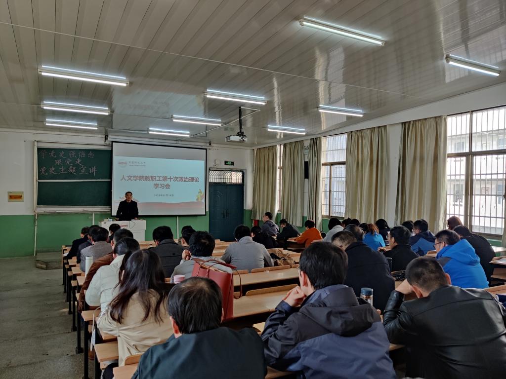 召开2021年第10次教职工政治理论学习会,深入学习中国共产党安徽省第十一次代表大会精神。学院领导班子成员、全体教职工参加学习。学院党委书记张红飞主持学习会。