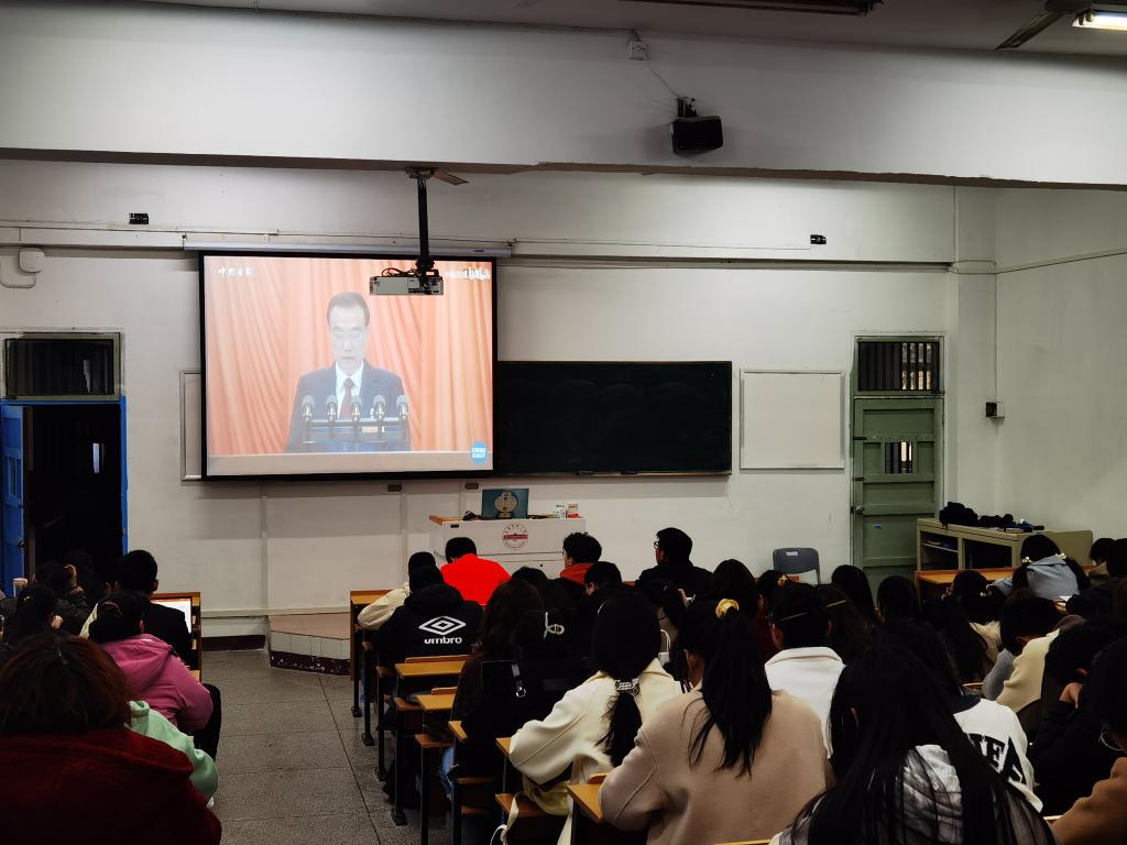 团委学生会组织团员青年观看全国“两会”开幕式直播盛况,聆听李克强总理代表国务院所做的政府工作报告。