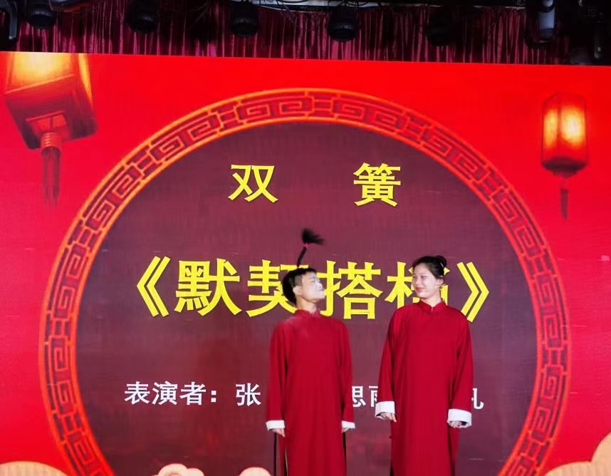 与歌舞类节目带来的视听盛宴不同,相声《烦心事》从大学生日常生活的小事侃起,一捧一逗让“包袱”恰到好处;小品《谍中谍》的故事以间谍情报传达为背景,在笑声中塑造了一个个勇敢的形象,赢得了观众们的长久掌声;双簧《默契搭档》则围绕着传统曲艺展开,让在场的学生们真切感受了一番语言的魅力。