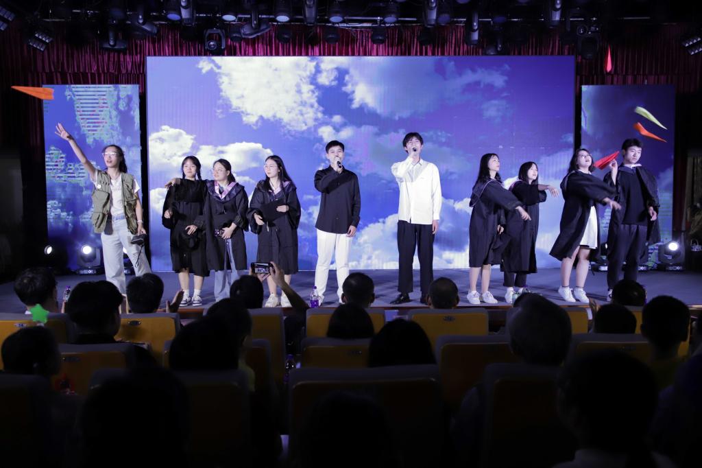 朗诵《青春派》四位同学化身经历完高考、展望大学生活的准大学生;怀报国之心、即将参军入伍的青年学生;幡然悔悟、“二战”考研的大学毕业生;奔赴偏远地区、做支教工作的女教师,通过四种人生选择,生动展示了不同年龄段青年们的奋斗青春。