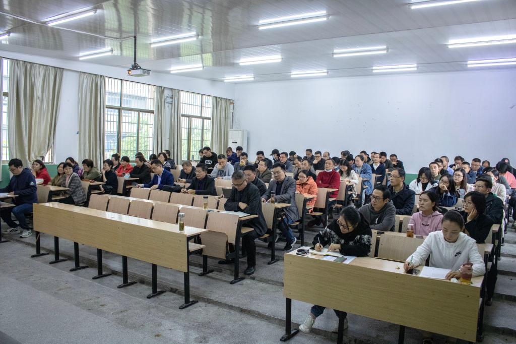 2022年第八次全体教职工大会在菱湖校区理二阶教室召开。学院领导班子成员、全体教职工参加了会议,学院党委书记张红飞主持会议。