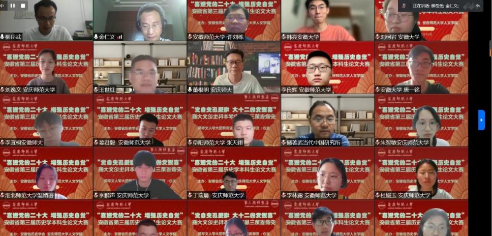 联合主办的2022年安徽省第三届历史学本科生论文大赛成功举办。因受疫情影响,本次论文大赛采用线上方式举行,来自全省各高校历史学专业师生100余人相聚云端、共襄盛会。