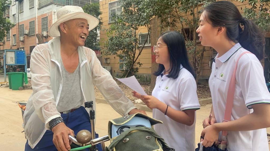 图为团队成员在街头采访调研
