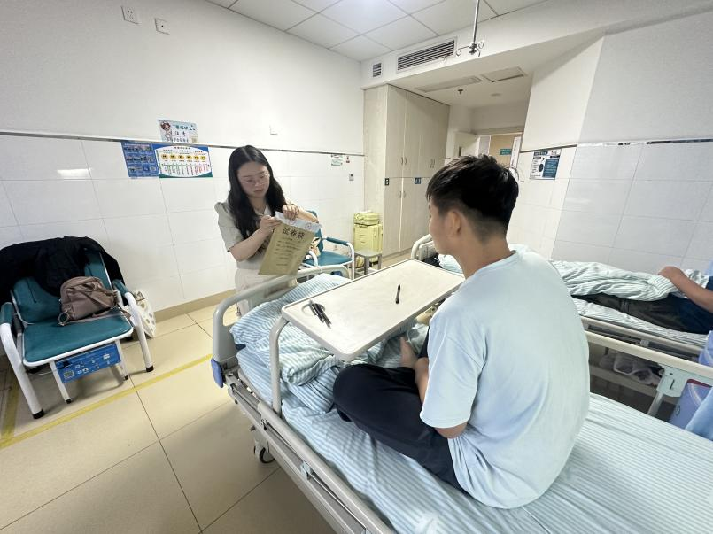 2023级一名本科生,他因病住院治疗。在与医生及本人沟通后,学院决定在病房为学生举行这场考试,本次考试流程标准化,试卷密封、专人送考、组织规范。